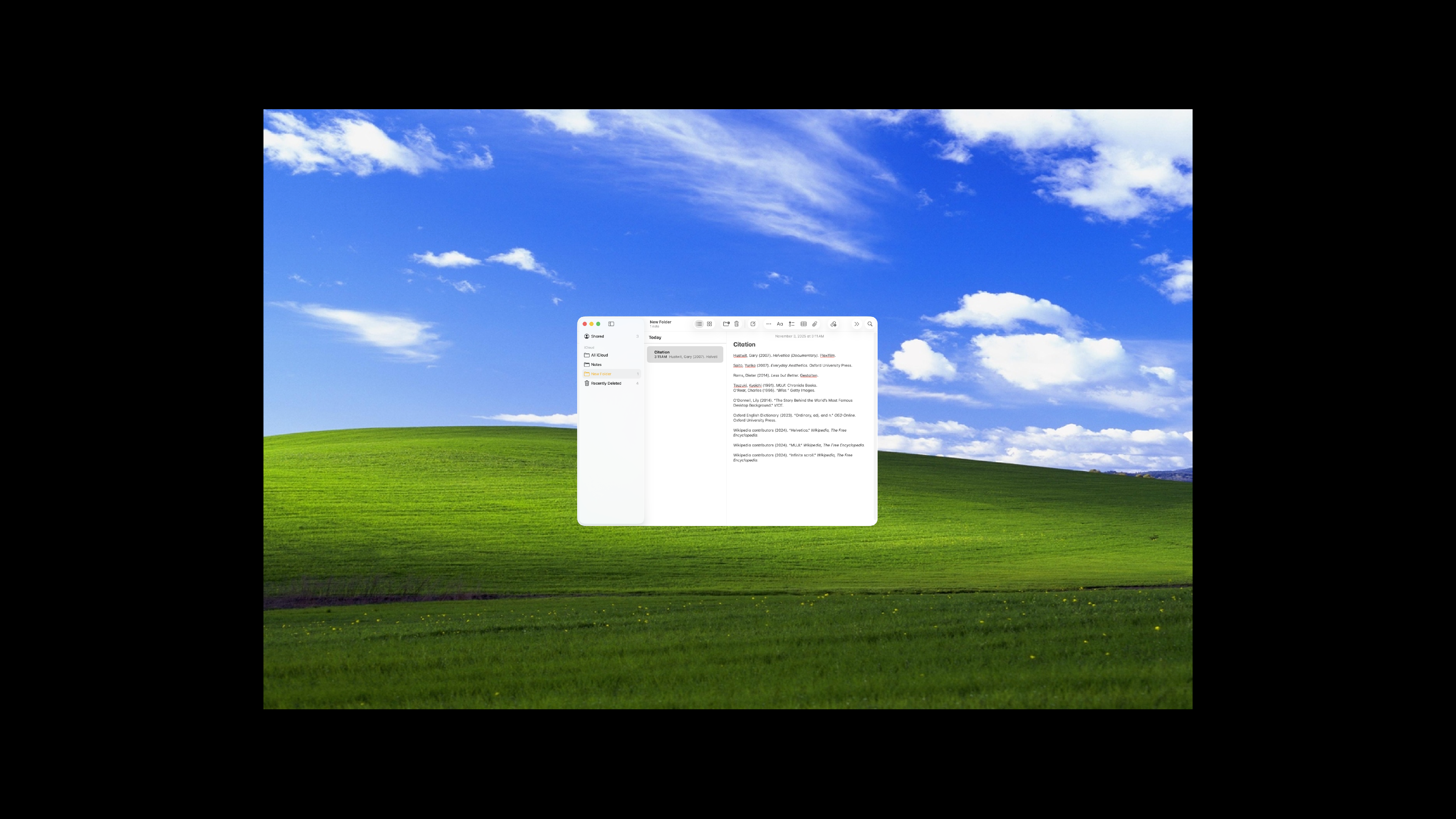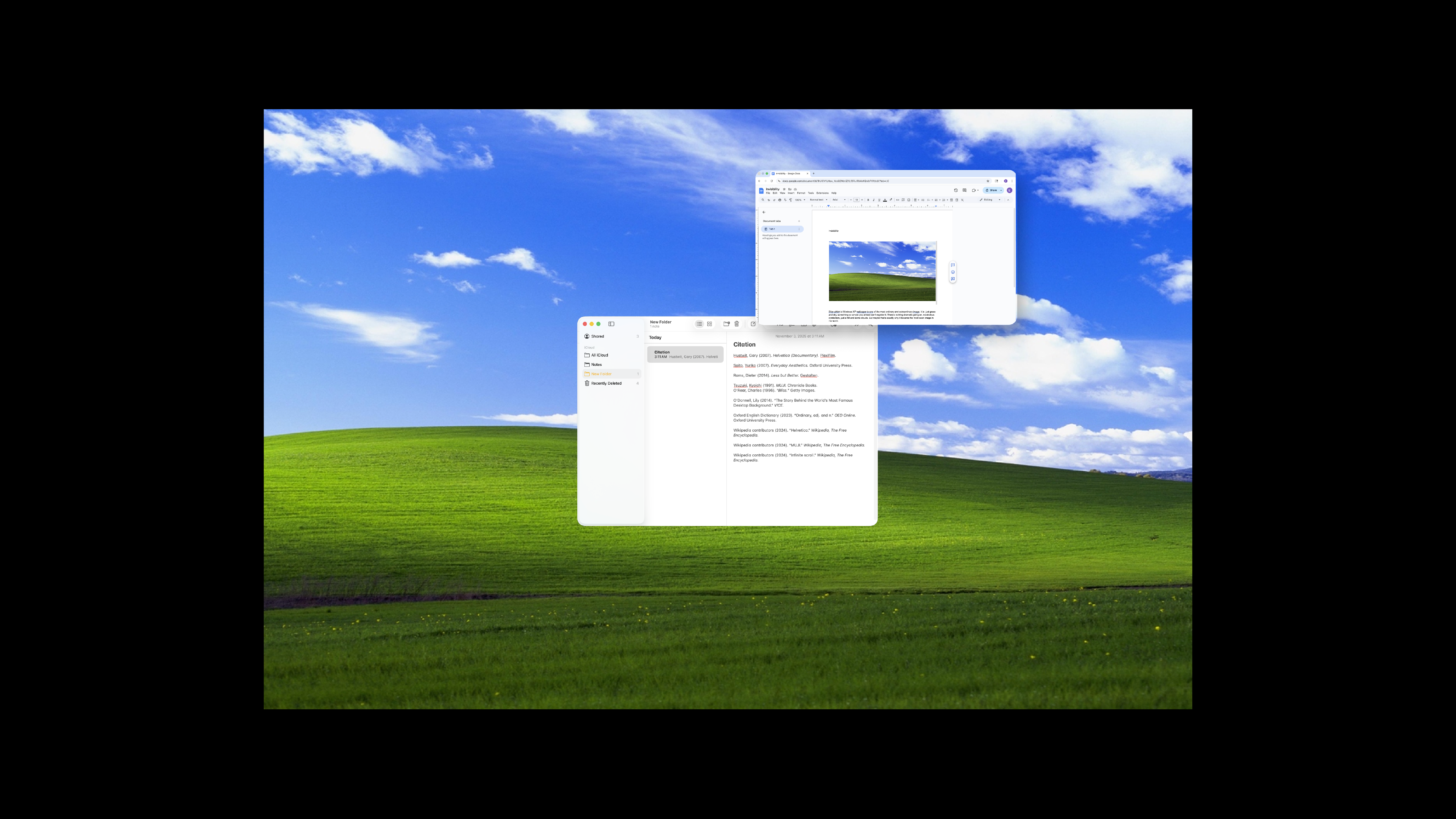 The project begins with Bliss, the Windows XP wallpaper, and unfolds through a series of scrollable “windows.” Scrolling, clicking, and navigating become ordinary gestures that mirror the content itself.