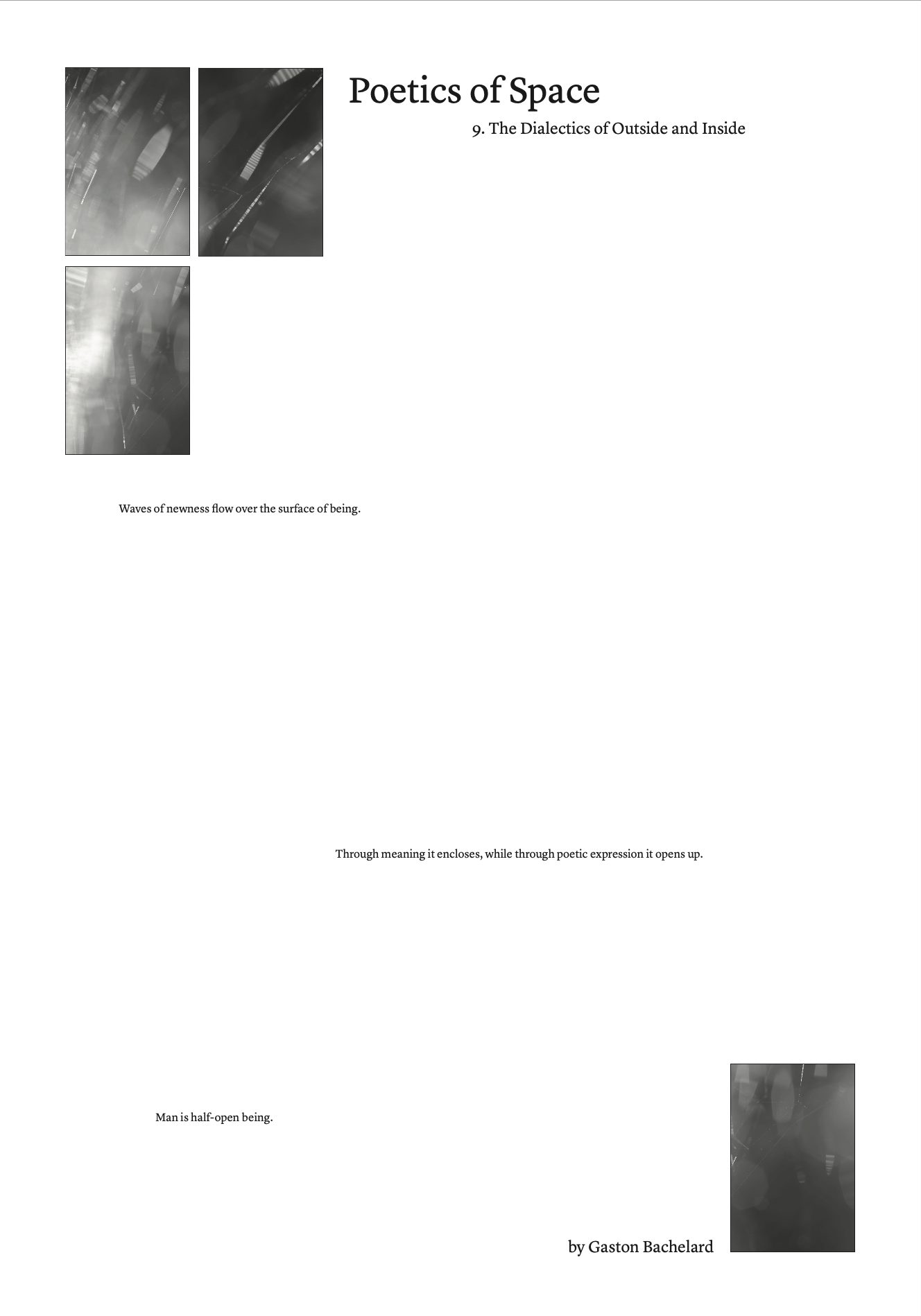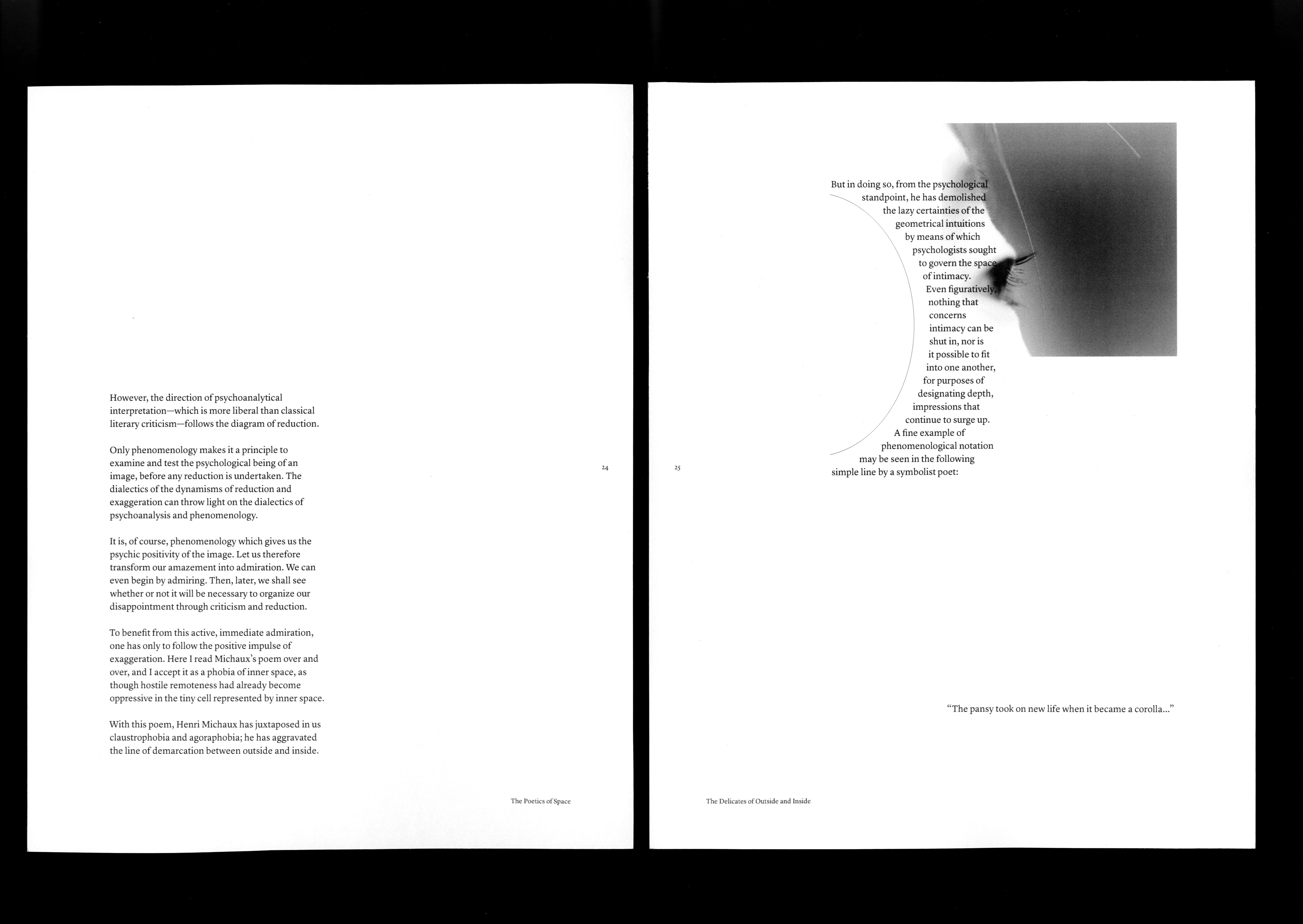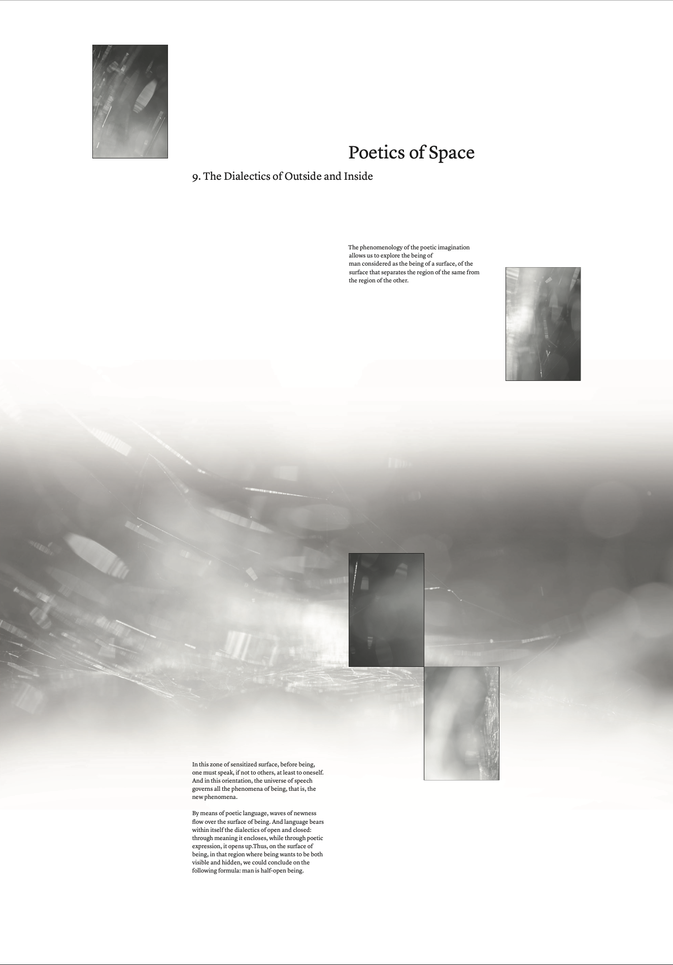 This project interprets Chapter 9 of The Poetics of Space by Gaston Bachelard through typography and spatial composition.